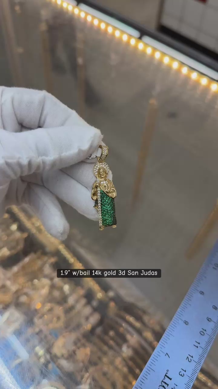 1.9" w/bail 14k gold 3d San Judas