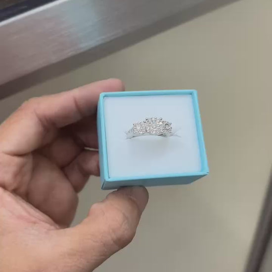 This 14k white gold ring features real diamonds totaling 0.75 carats, set in a size 5.5. The combination of durable 14k gold and high-quality diamonds offers both aesthetic appeal and lasting value, making it a significant addition to any jewelry collection.