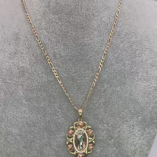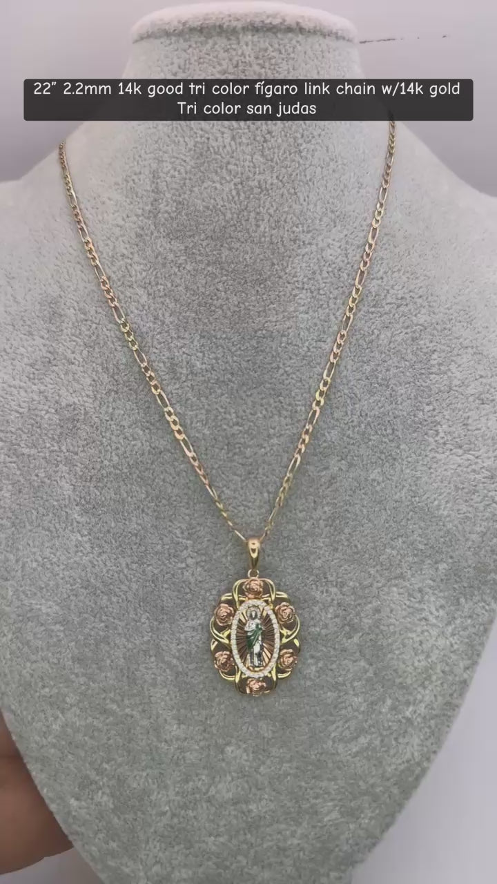 22" 2.2mm 14k good tri color figaro link chain w/14k gold Tri color san judas