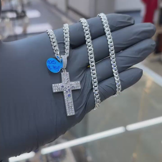 Add a touch of elegance to your style with our 22" 5.1mm silver Cuban link chain. The intricate silver cross with sparkling cz stones adds a sophisticated touch to any outfit. Crafted with quality materials, this chain is perfect for everyday wear or special occasions.