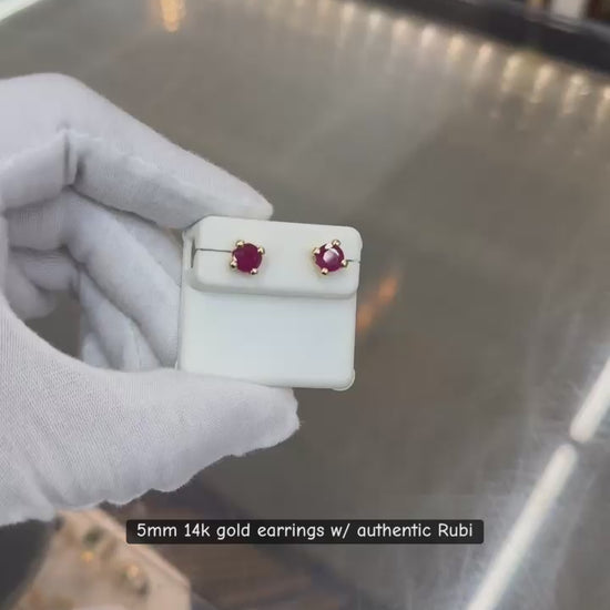 These 5mm earrings are crafted from 14k gold, featuring genuine rubies that add vibrant color and timeless elegance. Their compact size makes them perfect for everyday wear, while the authentic gemstones ensure lasting value. Expertly designed for durability and style, they offer a refined touch to any outfit.